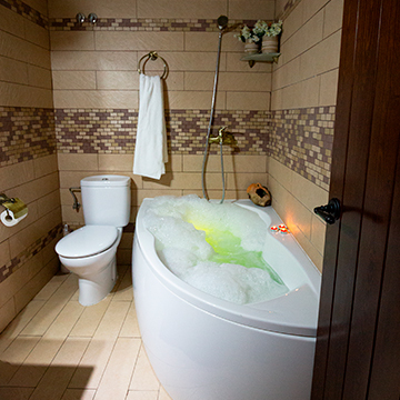 Tiene una habitación con dos camas individuales y baño incluido. Lo más destacable es la sala de estar equipada con un sofá cama de dos plazas, además tiene televisión, cadena de música, minibar, juegos de mesa, billar y diana. Desde ahí, se sale a una gran terraza desde donde se puede disfrutar de unas bonitas vistas.